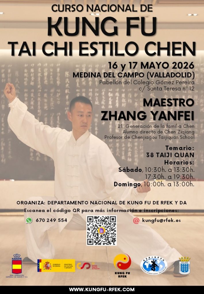 Los próximos 16 y 17 de mayo el Departamento Nacional de Kung Fu organizará la 7º visita del maestro Yanfei Zhang, 21ª generación del estilo de la familia Chen de Chenjiagou, en Medina del Campo (Valladolid).